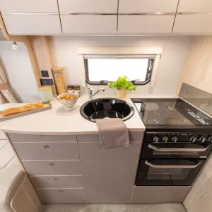 Practical additions like external sockets, a BBQ point, and an outdoor shower extend your living space and lifestyle beyond the caravan walls, while AL-KO wheel locks and the Omnivent roof extractor add a level of touring readiness and comfort that feels anything but entry-level.